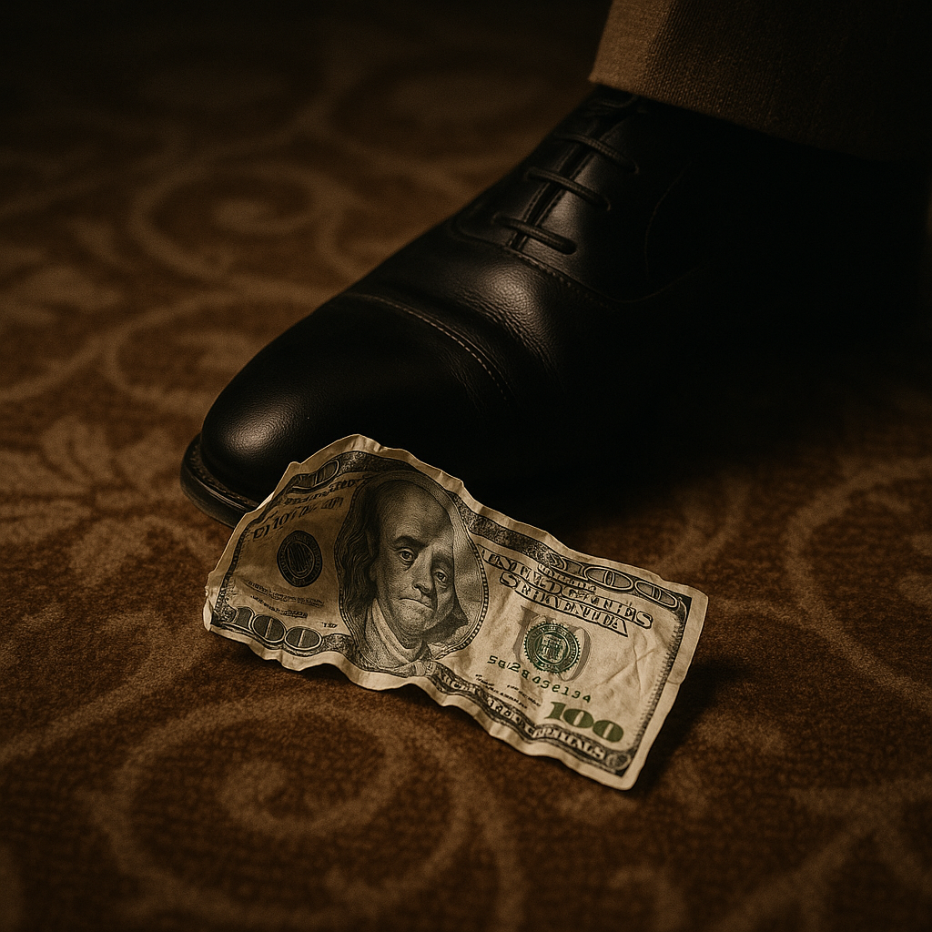 교수는 마지막으로 지폐를 발로 밟기까지 했습니다.