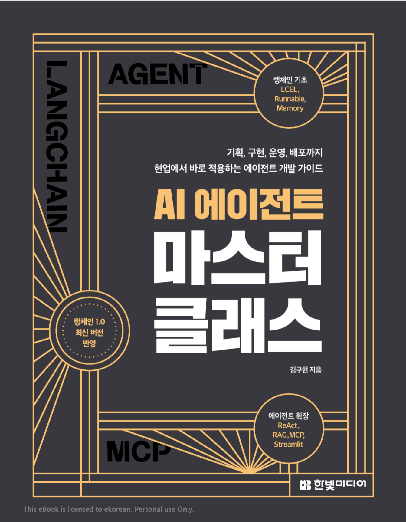 AI 에이전트 마스터 클래스, 한빛미디어, LangChain 책 추천, RAG 구현, MCP 활용법, AI 에이전트 설계, LLM 서비스 개발