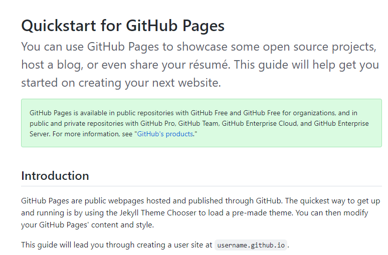 Quickstart for GitHub Pages - GitHub Docs